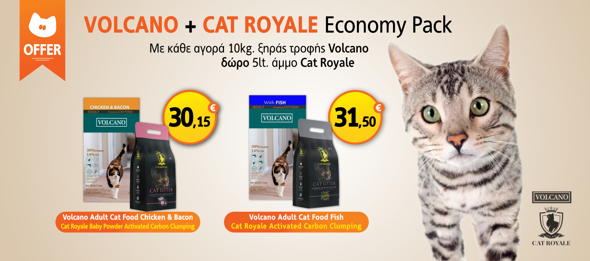 10KG + 5LT CAT ROYALE BABY POWDER ACTIVATED CARBON CLUMPING & ECONOMY PACK 2 X 10KGVolcano Adult Cat Food Chicken and BaconΑπό 30,15 €